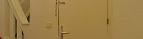 Inside, the abundance of light is immediately noticeable, thanks to the many windows and the unobstructed view of the street. Because the property is situated on a corner, you can just see a bit of the Erasmus Canal. Hallway with access to the hallway. The living room has en-suite doors to a side room, ideal as a study or playroom. The bedroom/dining room opens onto the balcony.