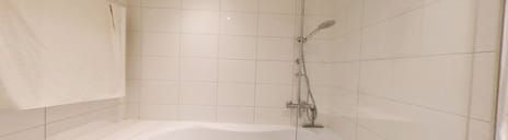 - Shower, bath, 2 toilets, 2 sinks, and walk-in shower