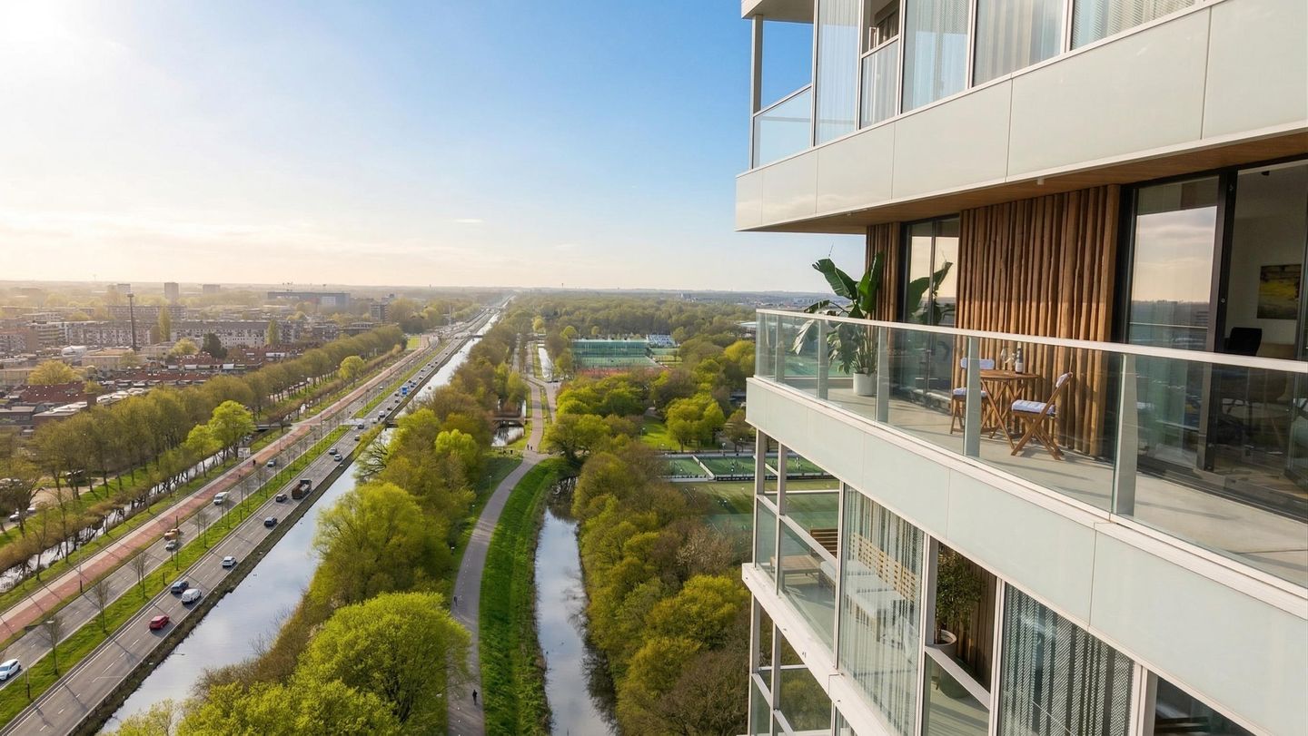 Wonen op hoog niveau, letterlijk en figuurlijk. Dit indrukwekkende hoekappartement van ca. 112 m² ligt op de 16e verdieping en wordt omringd door een royaal terras van ca. 30 m². Hier geniet je van een fenomenaal uitzicht over de skyline van Amsterdam, van de Westertoren tot ver over het Westelijk Havengebied.