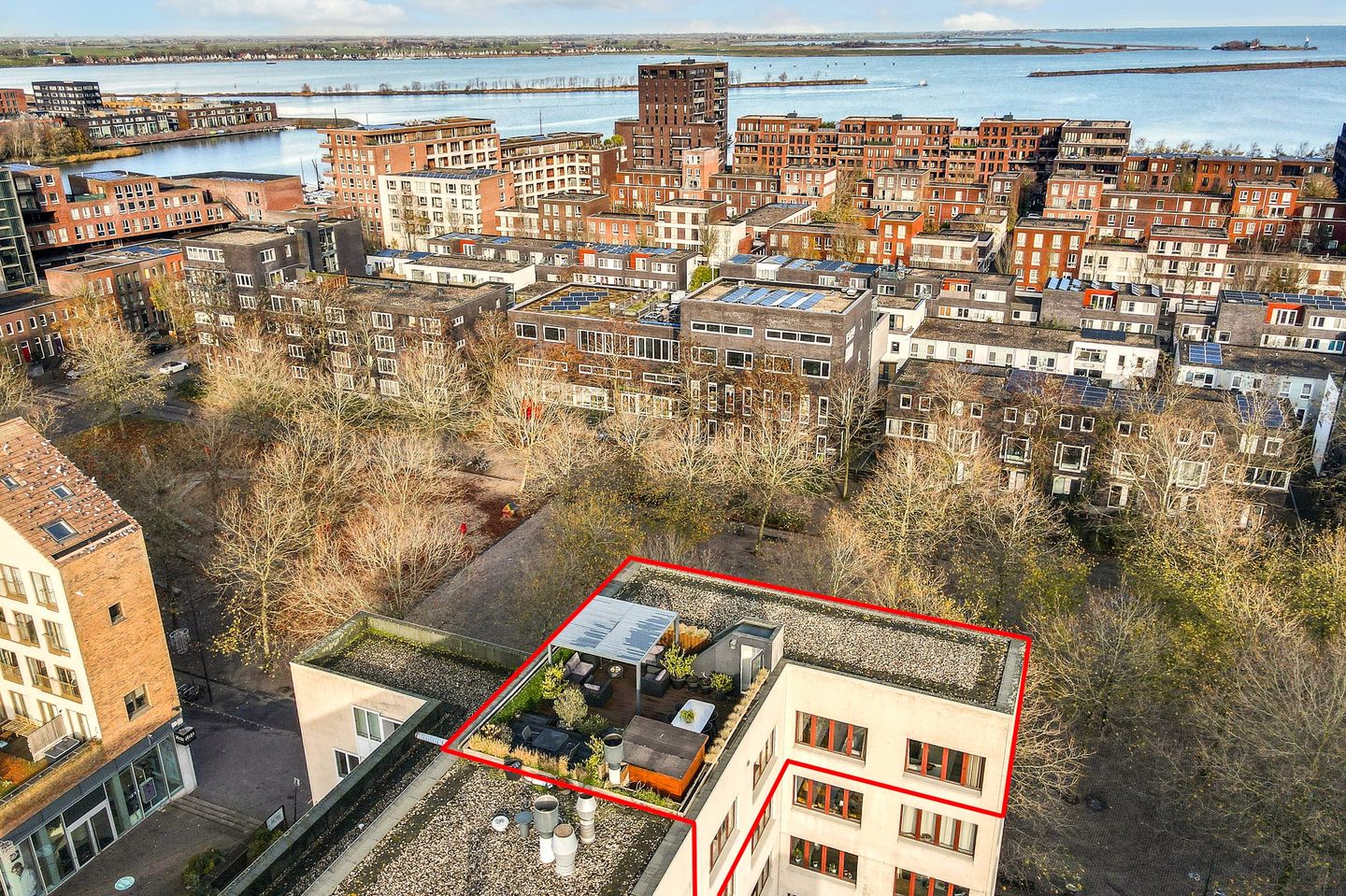 Stunning move-in ready penthouse (renovated in 2021) – 134m² on the top floor with elevator and a spectacular 54m² roof terrace with 360° views. Experience breathtaking panoramic views over Durgerdam, the Buiten-IJ, Diemerpark, and the heart of Amsterdam from this exceptional top-floor penthouse.