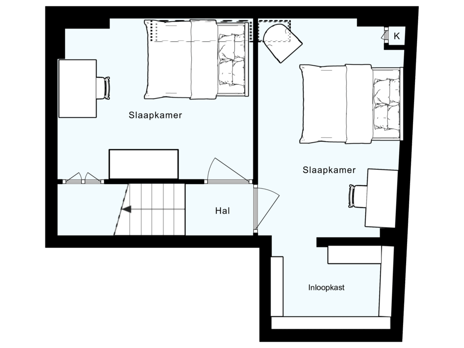 Through the private entrance you step into this charming ground floor apartment. The living room immediately feels spacious and inviting due to the large windows and corner position, allowing natural light to pour in throughout the day. There’s ample space for a comfortable seating area and a generous dining table. The open kitchen connects seamlessly and is practically designed. Next to the kitchen is a storage closet with connections for a washing machine and dryer, with the bathroom located directly adjacent. The bathroom is modern and functional, equipped with a shower and a stylish vanity unit. A staircase leads down to the basement level, where two bedrooms are located. The spacious master bedroom features a large walk-in closet, while the second room is perfect as a child’s room, study, or guest room. Additional storage space can be found under the stairs. The entire home feels practical, comfortable, and bright—making this ground floor apartment a warm and pleasant place to live.