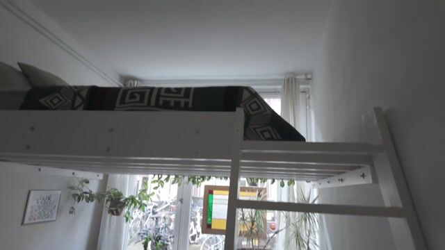 At the front of the property is the bedroom. Due to the high ceilings – a feature throughout the entire apartment – a mezzanine level has been created. This results in a playful layout, with the sleeping area above and space below for a home office or additional storage. The bedroom also features its own washbasin, adding extra comfort and convenience.