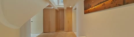 Through the private entrance, you reach the spacious hallway with access to a guest toilet,