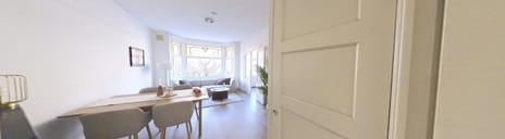 This charming and bright two-bedroom apartment (three rooms in total) is located on the first floor of a beautiful 1930s building. The home exudes character thanks to its many authentic details, including the stunning bay window with stained glass at the front. Here, you live comfortably on a quiet and wide street in the heart of Amsterdam’s popular Rivierenbuurt district.