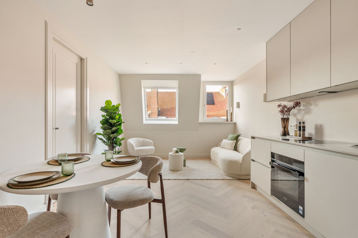 Via the neat stairwell you reach the entrance of the apartment on the third floor. The complete renovation has resulted in a sleek, modern and stylish finish. Upon entering, you step into the open and bright living area, where a cozy seating corner can easily be created.