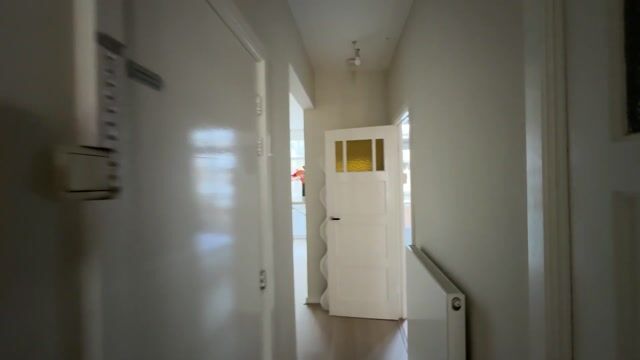 Through the communal, spacious entrance, you enter the property on the first floor. The hallway provides access to the living room at the front. The living room is bright thanks to the large windows, allowing lovely natural light throughout the day. There is also the possibility of creating an extra room within the living area. At the rear of the property, you find the kitchen, which was completely renovated in December 2024. Through the kitchen, you have access to the spacious balcony. Adjacent to the kitchen is the bedroom, featuring a large built-in wardrobe. French doors in this room also lead out to the balcony. The en-suite bathroom is equipped with a shower and a sink with a vanity unit, and there is a separate toilet in the hallway.
