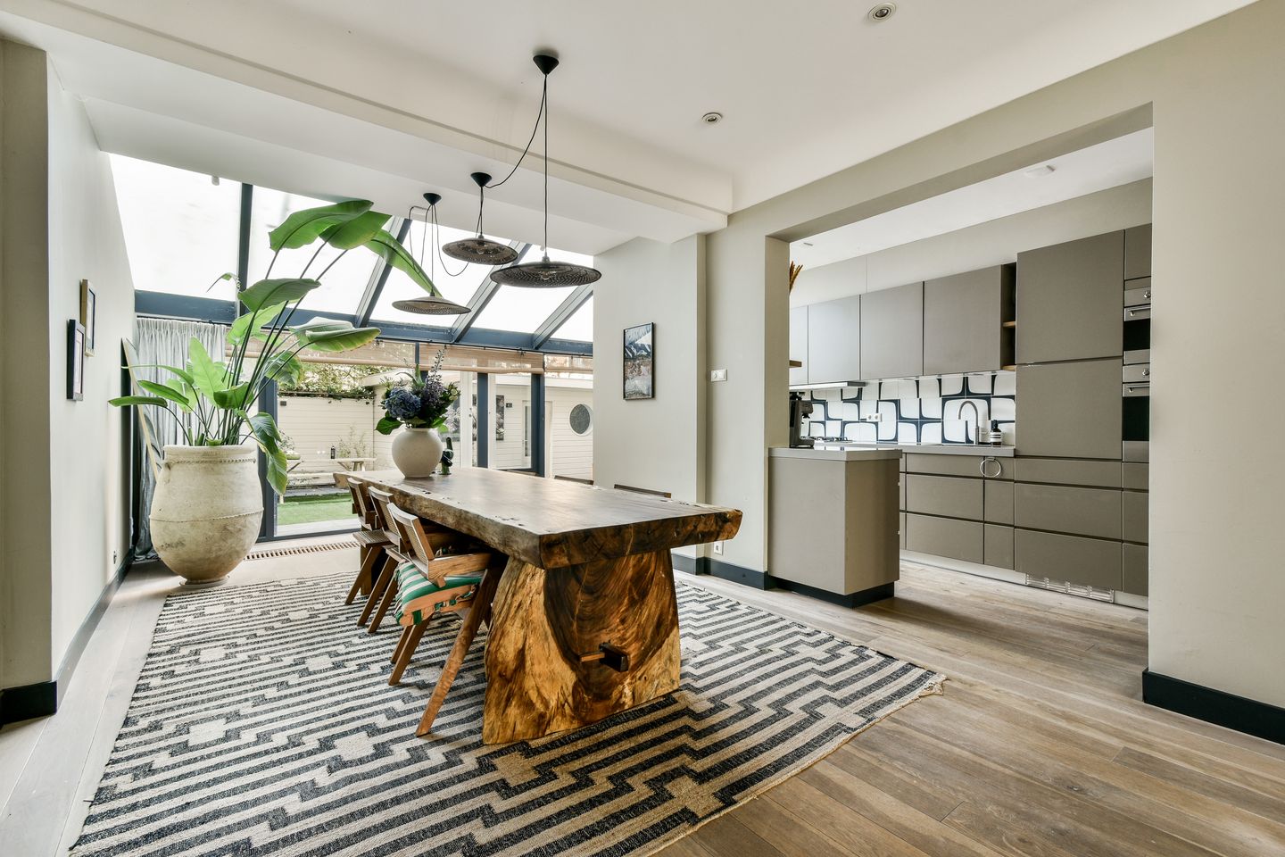 A real eye-catcher is the conservatory at the rear, which provides an oasis of light in the home. All frames have double glazing, including those at the front with HR++.