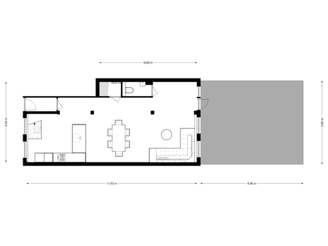 - 39 m² (6.95 metre deep and 5.65 metre wide)