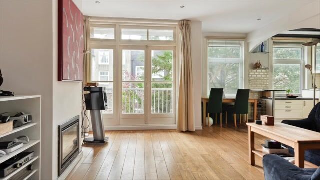 This spacious one-bedroom apartment (with potential for a second) is situated on freehold land (no leasehold!) and offers an abundance of natural light, a bay window, a balcony, and an open-plan kitchen. Located on the second floor of a classic 19th-century building on a peaceful street in the middle of the Jordaan, you’ll be surrounded by canals, galleries, cafés, and everything that makes this neighbourhood so beloved.
