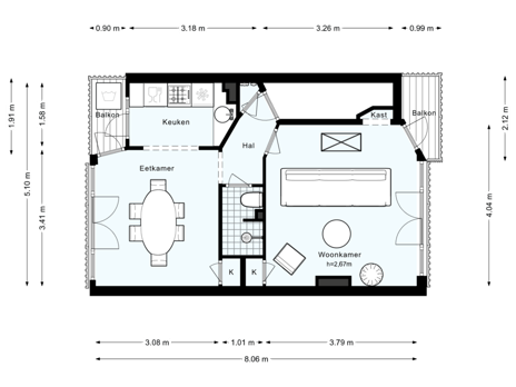 - Building-related outdoor space: 3,37 m² (two balconies)