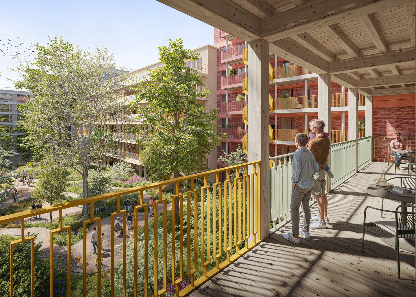 In Hibi, you can not only enjoy the sunshine in your private outdoor space, but you can also choose to relax in the greenery of the courtyard garden. The surprise of HiBi is the large green shared courtyard garden: a lush oasis full of trees and plants. From your home, you have a beautiful view of the greenery. Here, residents relax, children play, and animals nest in over 1250 m2 of urban nature. Hibi literally brings nature to your backyard. The gentle transitions, stepped levels, and small water features give the garden a beautiful, playful atmosphere. Here you can do fun things together, such as sports, barbecuing, or gardening. Truly a place for rest and relaxation.
