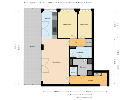 Beide slaapkamers zijn goed bemeten en geschikt als slaap-, werk- of logeerkamer. Een praktische indeling die past bij diverse woonwensen.