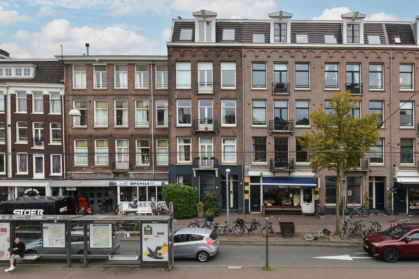 Accessibility is excellent: there is a tram stop (line 1) right outside the door, which takes you to Leidseplein or Lelylaan station in less than five minutes. The A10 ring road is also just a few minutes away via Surinameplein. There is also plenty of parking available in the area.