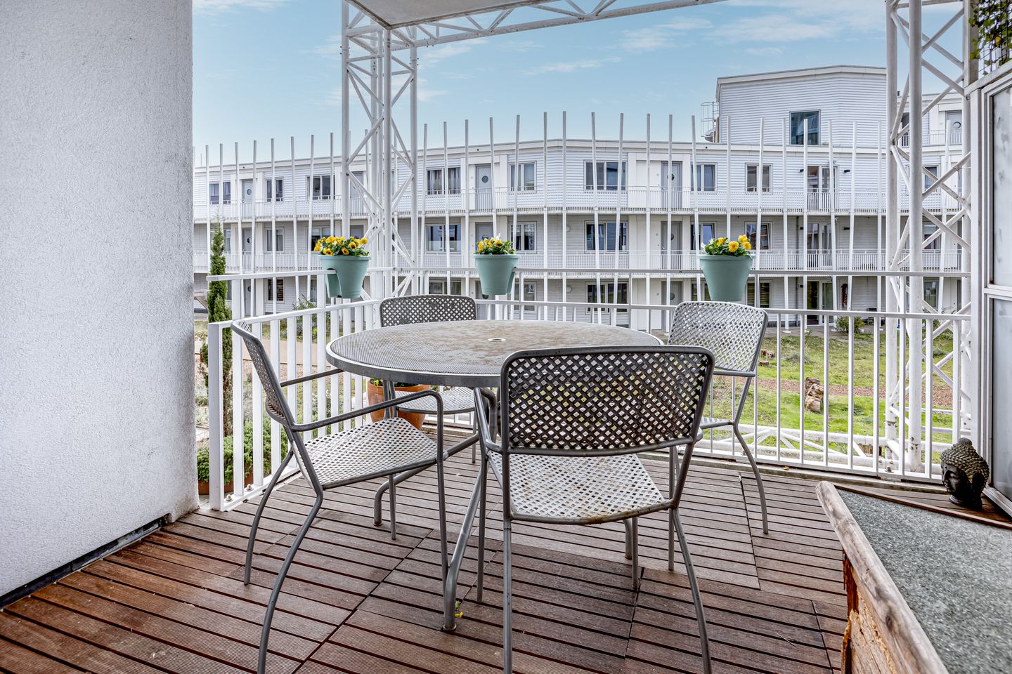 Next, you enter the spacious living room with an open-plan kitchen. The large windows on both sides provide this area with an abundance of natural daylight. The living room is located at the rear, overlooking the beautifully landscaped communal garden. The kitchen is from the luxury brand Poggenpohl and is fully equipped, including an induction hob, Quooker, and a large kitchen island with a bar area. There's also a microwave, oven, and fridge/freezer. The living room provides access to the covered south-facing balcony, which overlooks the communal garden. The apartment is fully insulated and was built with high-quality materials in 2014. It’s a very comfortable home with an A-label energy rating. The entire apartment features HR++ glazing and underfloor heating, with an oak floor from Dennebos. The apartment has an individual boiler (Intergas), mechanical ventilation, a video intercom, and fiber-optic internet.