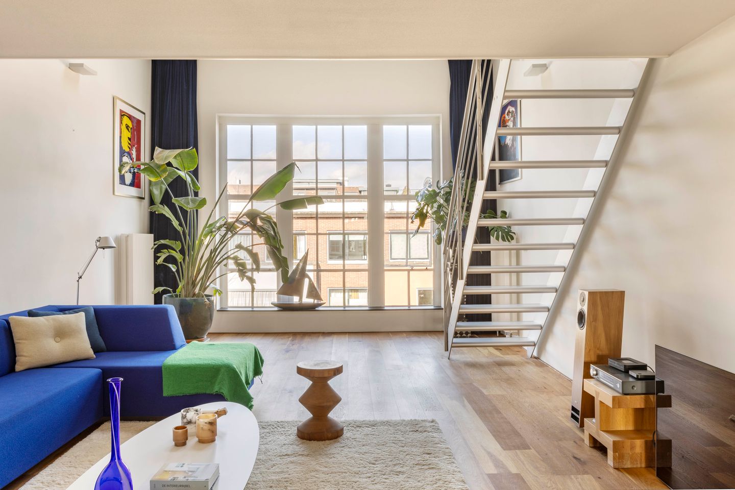 Modern loft of over 143 m², spread across two floors, featuring high ceilings and large windows, set within a distinctive historic building on Rapenburgerstraat. The property is within walking distance of Artis, the Hortus Botanicus and Waterlooplein.
