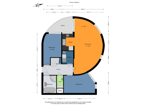 De entree bevindt zich op de vierde verdieping, bereikbaar per lift of via het trappenhuis.