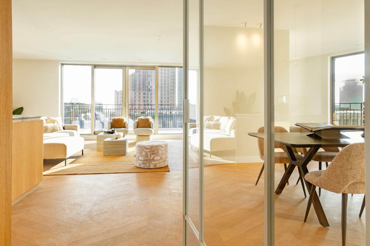 The Bow building stands out for its elegant volumes and soft, rounded lines. The design is by Orange Architects, who drew inspiration from the refined urban structures of Paris, where architecture and public space blend seamlessly. The combination of generous windows and spacious outdoor areas gives living on the IJ an almost Mediterranean feel, with light and air as defining elements.