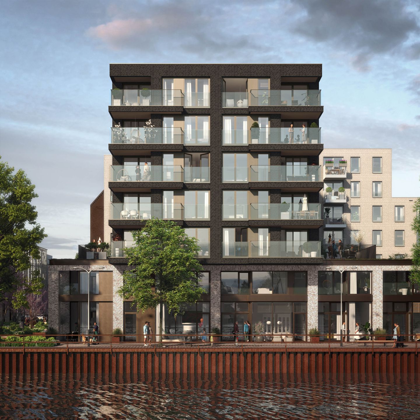 Houtsma is ontworpen voor mensen die houden van de stad, maar ook van rust, ruimte en uitzicht. De twee woonblokken liggen rond groene binnentuinen en grenzen aan een autoluwe kade met zicht op het water. Of je nu kiest voor een appartement met balkon, een stadswoning met een eigen voordeur aan de kade of een woning met een bijzonder terras: overal voel je dezelfde kwaliteit en aandacht voor wooncomfort.