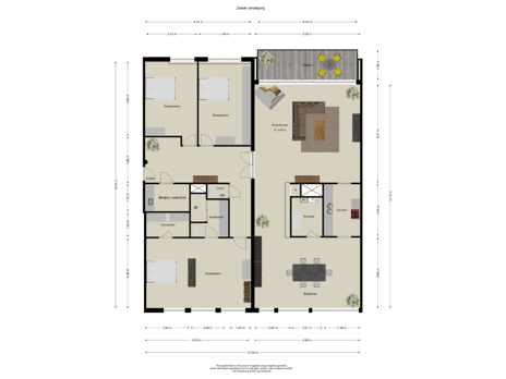 The master bedroom is a true suite of approx. 31 m², complete with a large walk-in closet and a luxurious en-suite bathroom featuring a double sink, toilet, and walk-in shower. On the other side of the apartment, two well-laid-out and spacious bedrooms can be found—one with a custom-made wardrobe and beautiful views over the Vondelpark.