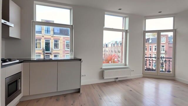 The living room with open kitchen has an abundance of natural light thanks to the corner location. From the living room you have a charming view of Javastraat from the French balcony. There is also a roof terrace with views over the city. In addition, the property is situated on freehold land and comes with a rental permit for shared occupancy.