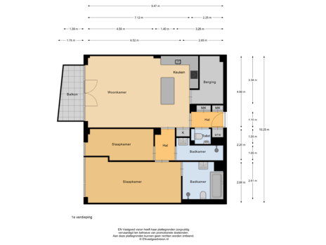 A comfortable and future-proof apartment with a thoughtful layout and a light, open atmosphere. From the hallway, you enter the living space with kitchen, dining area and lounge, all connected to the balcony. The kitchen balances function and design, with space for a kitchen island and practical storage behind it. The private area features a generous main bedroom with en-suite bathroom, suitable for flexible layouts and optionally a walk-in closet. A second bedroom and an additional bathroom complete the home. Both bedrooms border the green zone beside the balcony