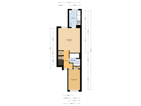 Via het gemeenschappelijke trappenhuis bereik je de entree van de woning op de eerste verdieping. Vanuit de hal heb je toegang tot alle vertrekken van het appartement.
