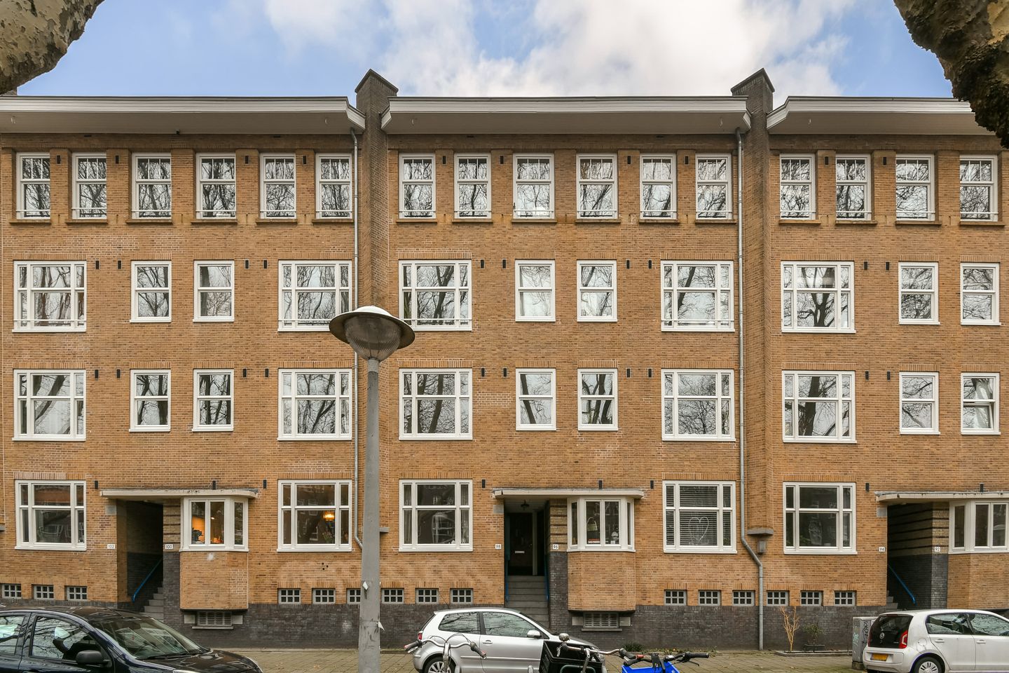 Situated on the broad, tree-lined Willem de Zwijgerlaan, on the desirable border of De Baarsjes and Oud-West, this charming first-floor apartment forms part of the monumental Geuzenhof I complex.
