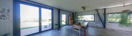 The low-maintenance garden surrounding the house offers complete peace and privacy, with views of meadows as far as the eye can see. A place to truly relax.