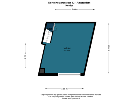 Geheel woonhuis (bruto vloeroppervlak 168m2) op eigen grond, bestaande uit 4 zelfstandige appartementen (6 verdiepingen); een appartement op de begane grond en souterrain met daarboven 3 appartementen. Alle woningen hebben een eigen opgang. Het pand is gelegen aan de Korte Keizersstraat 13, op steenworp afstand van de Nieuwmarkt.