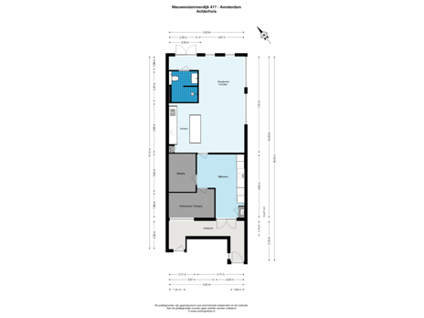 Via de gang in het souterrain bereik je het achterom, dat uitkomt op de Nieuwendammerdijk en tevens toegang geeft tot het achterhuis. Hier is voldoende ruimte voor fietsen.
