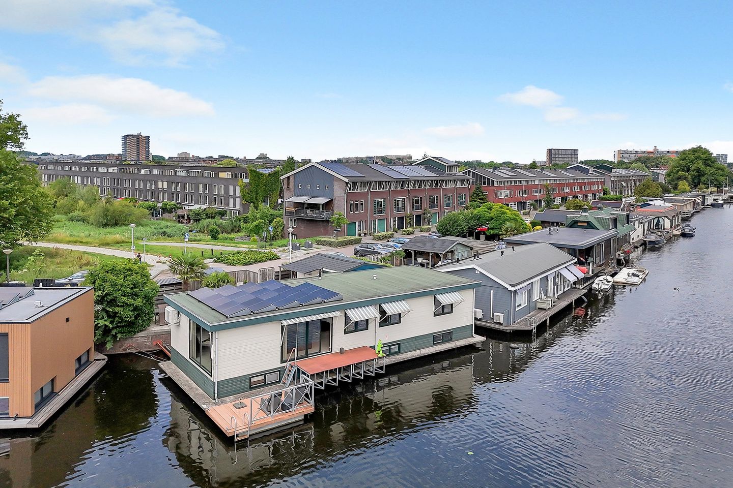 Riante woonark met prachtige ligplaats aan de Ringvaart van de Haarlemmermeer in het groene stadsdeel Amsterdam Nieuw-West.