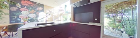 de achterzijde de luxe woonkeuken (2019) met o.a. Quooker, inductiekookplaat, vaatwasser