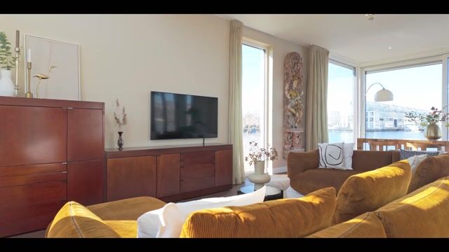 At the front, the living room connects through large sliding doors to the south-facing garden. The ideal place for breakfast or lunch. At the rear, the living room continues above the water, with windows all around and a sliding door at the waterfront. Here you can enjoy the afternoon and evening sun all year round.