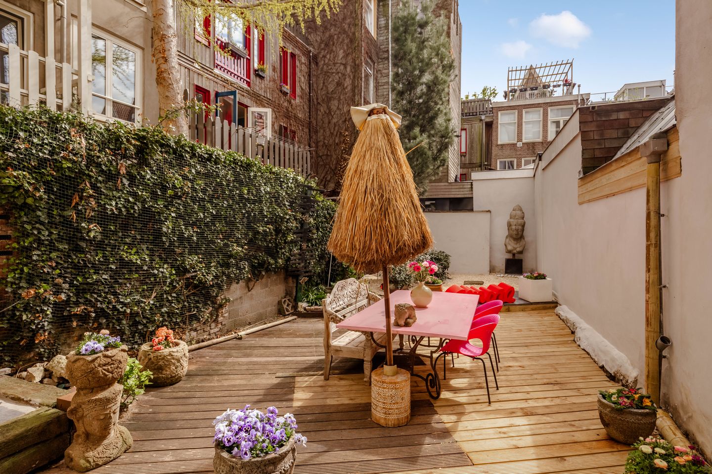 The rear garden of approximately 75 m² on freehold land is a rarity in the Jordaan, a hidden urban oasis where peace, privacy, and space come together. Here, outdoor living unfolds in a way that is almost unimaginable in the city centre. From breakfast in the morning sun to long dinners at a generous table, surrounded by greenery and silence. This is not a traditional city garden, but a true extension of the home, a place where indoor and outdoor living flow seamlessly together.