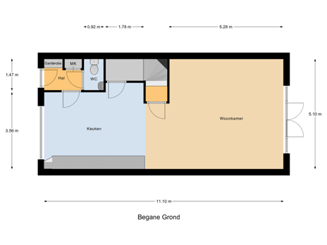 Begane grond: Via de voordeur betreed je de hal, waar je de meterkast en het toilet vindt. Dan stap je de leefruimte in met aan de voorzijde de keuken. Vanuit de keuken kijk je uit op een speelplaats voor de kids en groen. De keuken is in een rechte opstelling geplaatst en voorzien van inbouwapparatuur als een inductiekookplaat, afzuigkap, combi-oven/magnetron, koel-vriescombinatie en vaatwasser. Extra bergruimte is er in de handige trapkast en in het midden nog een portaal met de trapopgang. Als je doorloopt naar achter kom je in de heerlijke ruime woonkamer, welke door de uitbouw net dat beetje extra heeft. En door de lichtkoepel en openslaande deuren komt er fijn veel daglicht binnen. En dan nog als extra ruimte via de openslaande deuren stap je zo de serre in. Een mooie uitbreiding van de leefruimte waar je het hele jaar door comfortabel kunt zitten. Vanuit de serre heeft u toegang tot de zonnige achtertuin met berging en achterom.