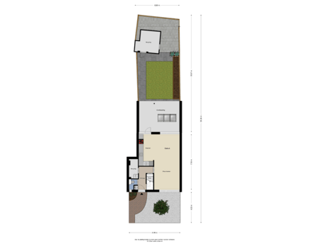 - 74 m² (13.50 metre deep and 5.45 metre wide)