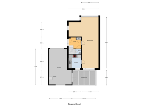 - 82 m² (7.50 metre deep and 11.00 metre wide)