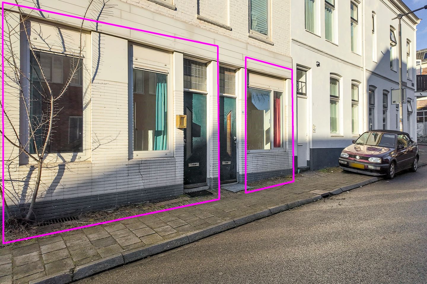 This ground-floor apartment forms part of a building constructed in 1908. The three large windows of the apartment are fitted with plastic/aluminum frames with double glazing and the property has an energy label D. The apartment requires modernization, and the central heating boiler is outdated and due for replacement. The property is currently in the process of being legally split into apartment rights together with the upstairs apartment at number 61.