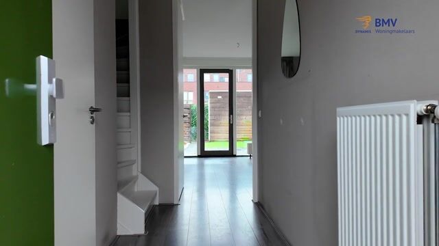 Entree via de voordeur in de ruime hal met meterkast en modern toilet met fontein. Vanuit de hal stap je de royale en lichte woonkamer binnen. Dankzij de grote raampartijen en de deur naar de achtertuin geniet je hier van veel natuurlijk licht.