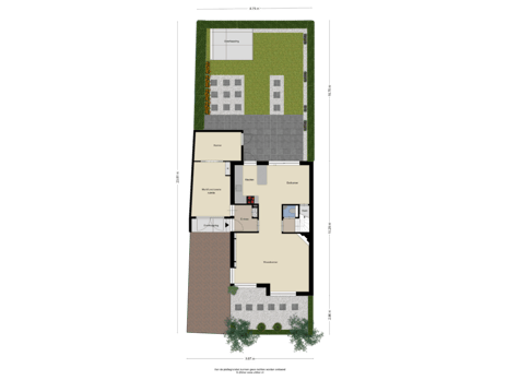 De woonkamer is ruim en licht en ligt aan de voorzijde van de woning. Vanuit de entree kom je links in de moderne keuken met groot kookeiland en aangrenzende eetkamer. De eetkamer beschikt over een schuifpui naar de achtertuin, waardoor binnen en buiten mooi met elkaar verbonden worden.