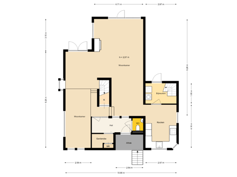 De woning heeft een zeer royale verlengde garage (12,00m x 3,00 m). Naast de garage een fraaie werk-/hobbykamer. Ideaal als praktijkruimte, atelier of extra woonruimte met eigen badkamer en pantry. Dit alles heeft een eigen entree en staat via de garage/berging en een trap in de bijkeuken in directe verbinding met de woning.