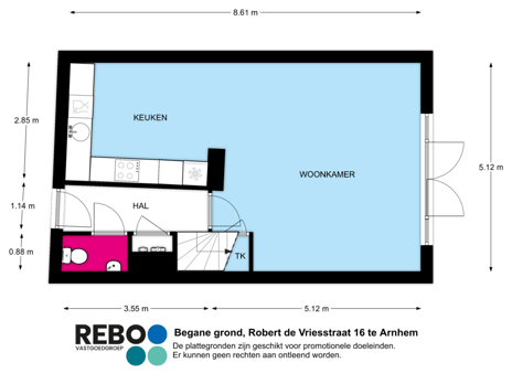 Aan de voorzijde bevindt zich de open keuken, ingericht in hoekopstelling en voorzien van de benodigde inbouwapparatuur. De gehele begane grond beschikt over een nette vloerafwerking en is praktisch in onderhoud.