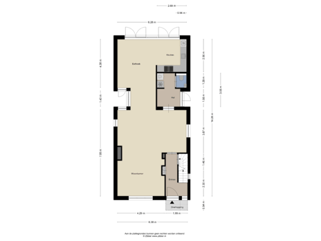 De in 2006/2007 geplaatste aanbouw omvat de eethoek, keuken en portaal met toilet, kastruimte en de aansluiting voor het witgoed. Verder is er een inpandige erker gemaakt voor extra lichtinval.