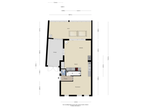 Aan de zijkant van de woning is een carport/garage gemaakt met houten openslaande deuren die tevens als toegang achterom dient. Vanuit deze ruimte is een doorgang naar de tuinkamer/overdekt terras dat is voorzien van een lichtstraat en glazen schuifwanden zodat al vroeg en laat in het seizoen buiten kan worden gezeten.