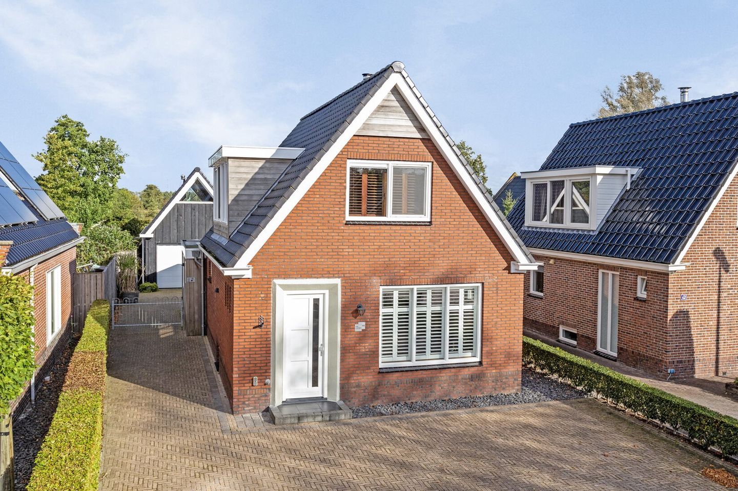 Via de entree aan de voorkant van de woning kom je binnen in een ruime hal, waar zich de meterkast en de trapopgang naar de eerste verdieping bevinden. Vanuit de hal heb je toegang tot de lichte woonkamer en de moderne badkamer. De badkamer is uitgerust met een heerlijk ligbad, douche, wastafel met meubel en een hangend toilet. De sfeervolle woonkamer aan de rechterkant van de woning beschikt over een gezellige open haard, ideaal voor de koude wintermaanden. Vanuit de woonkamer kom je in de stijlvolle keuken, voorzien van hoogwaardige inbouwapparatuur en voldoende ruimte voor een royale eethoek. De openslaande deuren in de keuken leiden naar een prachtige overkapping, perfect voor buitenleven. Links van de keuken bevindt zich de nette bijkeuken met witgoedaansluitingen, extra opbergruimte en een tweede toilet. Ook vanuit de bijkeuken heb je toegang tot de overkapping, die perfect is om het hele jaar door van de tuin te genieten.