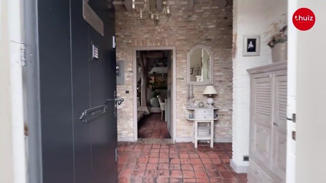 Nadat je je auto voor de garage hebt geparkeerd ga je naar de voordeur. Je komt in de hal waar onder ander het toilet is. In de hal is ook de meterkast welke voorzien is van 8 lichtgroepen en 2 aardlekschakelaars. De rode antieke tegels als het balken plafond geven de woning een warme sfeer. Deze elementen zien we ook verder in de woning.