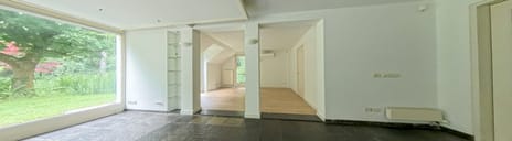 Located on a unique and expansive woodland plot on the edge of Baarle-Nassau, this characterful and multifunctional residence is surrounded by a lush, park-like forest garden and several high-quality outbuildings.