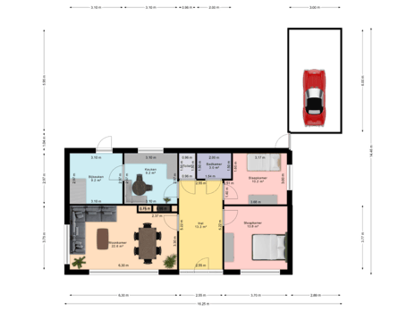 Tussen beide kamers is een praktische ruimte waar eenvoudig een inloopkast of berging gerealiseerd kan worden. Toegang tot slaapkamer 4 gaat via slaapkamer 3.