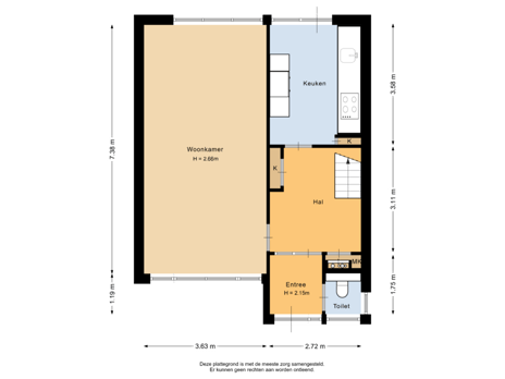 Entree, 3 m², v.v. kunststof voordeur en vloerbedekking.