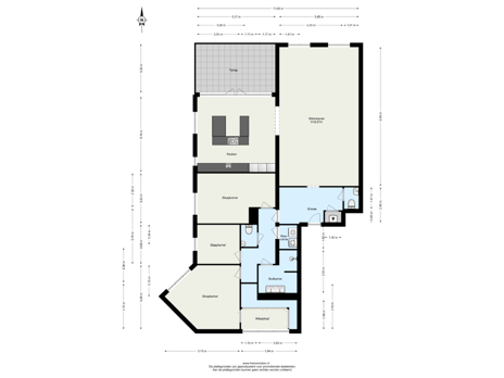 Bij binnenkomst op de 7e verdieping treft u de centrale hal met 2 appartementen en de meterkast. Het appartement zelf komt u binnen in de ruime hal die toegang geeft tot alle vertrekken.